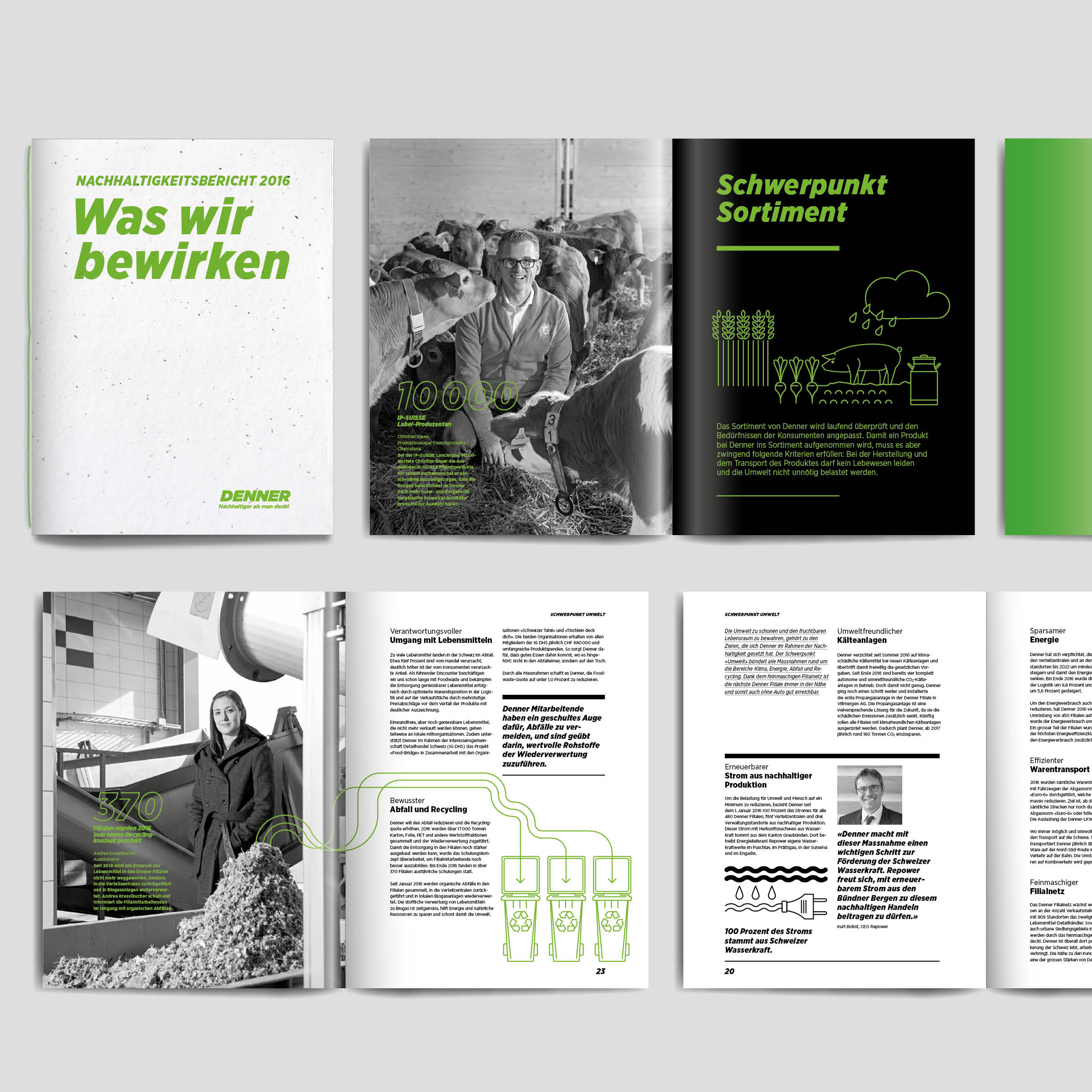 Projekt: Printprodukte Nachhaltigkeitsbericht, für Denner Stakeholder.